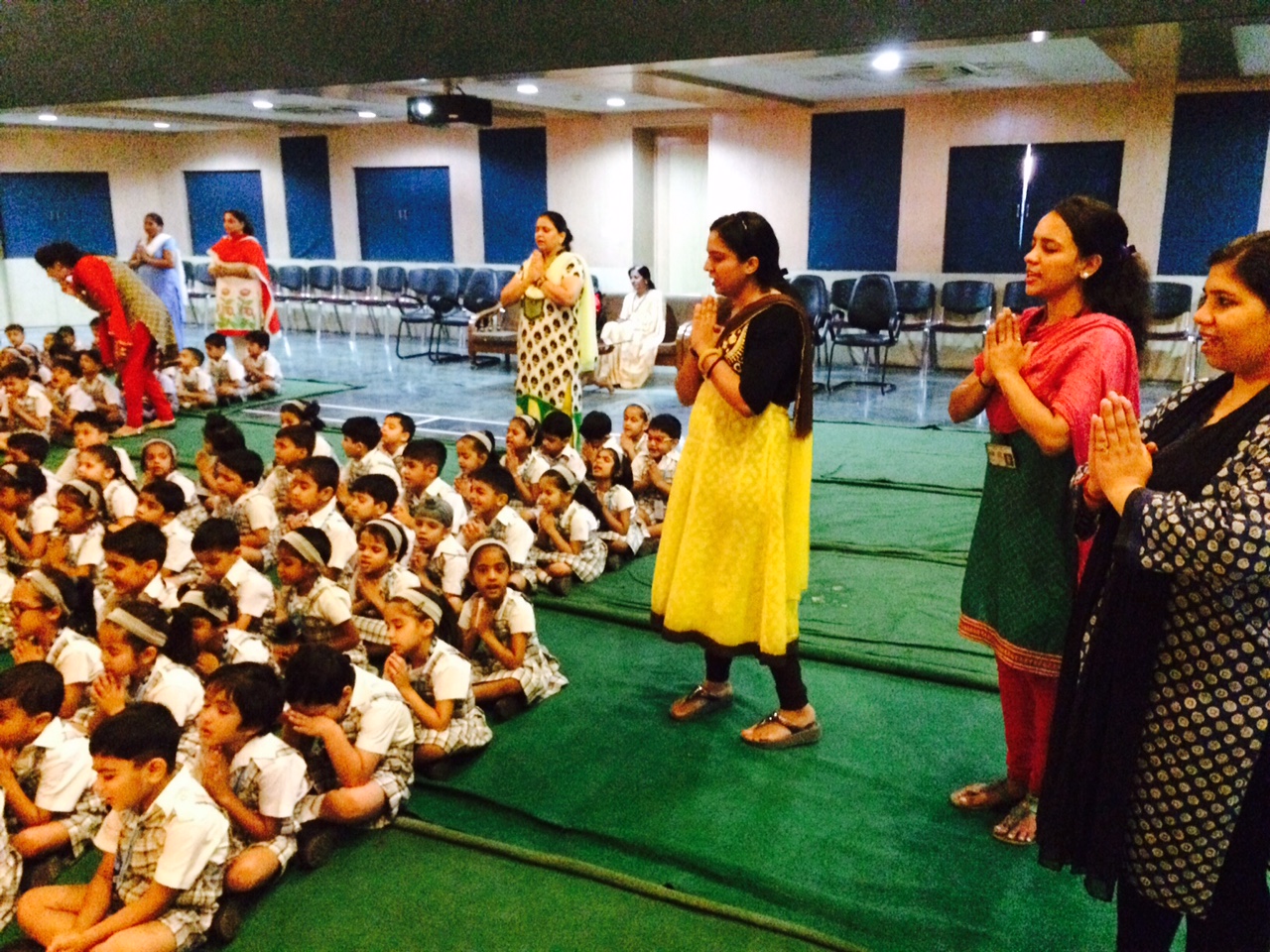 Our teachers and AHM welcomed us back with a bright smile on their faces. It was quite exciting to come back to school and meet our friends. Our friends in Nursery prayed in their classrooms with Neeti Ma'am singing the prayer so melodiously. We, the Prep children went to the auditorium and attended our first assembly after the vacations. We were thrilled to watch an engaging Puppet show by our teachers Ms. Divya and Ms. Vinita who taught us the importance of healthy food and nutrition.