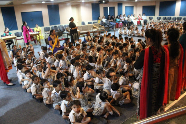 We, the children of Nursery A performed enthusiastically during our class assembly in the school auditorium.  We recited a rhyme on Means of Transport and used relevant props for the same. Sruti Jana Balaji of our class very gracefully chanted Shlokas on Lord Ganesh. Our friends Shambhavi Parashar, Janvi and Sejal Rathi spoke the thought for the day "Eat Healthy, Stay Healthy".